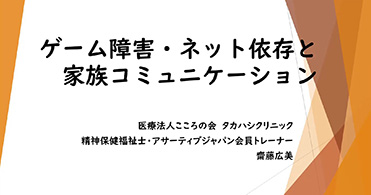- 「ゲーム障害・ネット依存と家族コミュニケーション」(オンライン講演会)